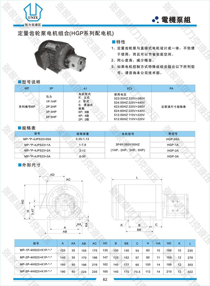 • 所属分类:定量齿轮泵电机组合(HGP系列配电机)